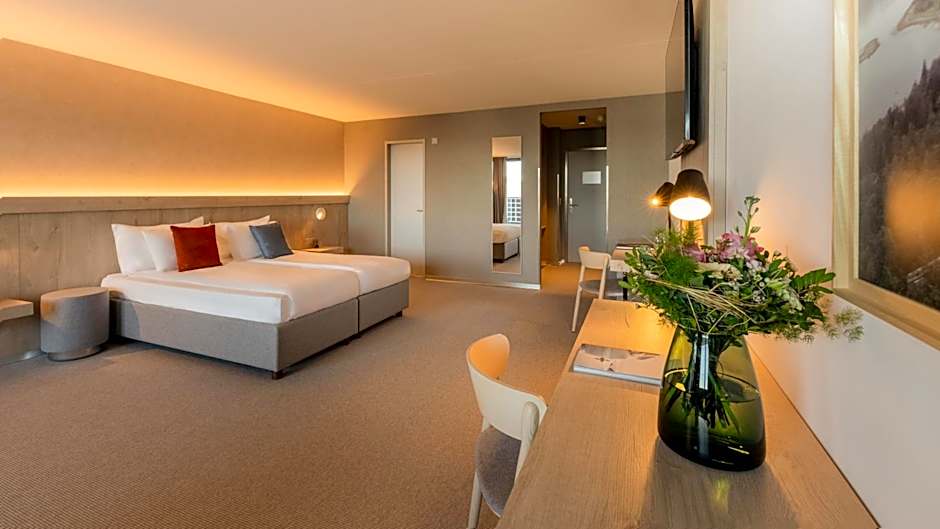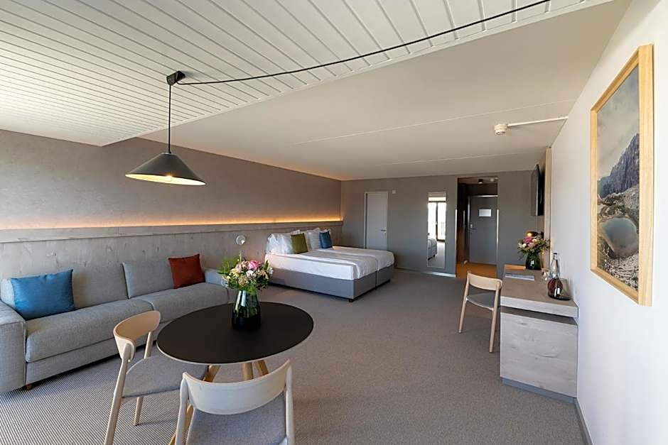 The double room's kitchenette, which features a refrigerator and kitchenware, is available for cooking and storing food. The spacious double room offers a coffee machine, a seating area, a balcony with mountain views as well as a private bathroom featuring a hairdryer. The unit offers 2 beds.